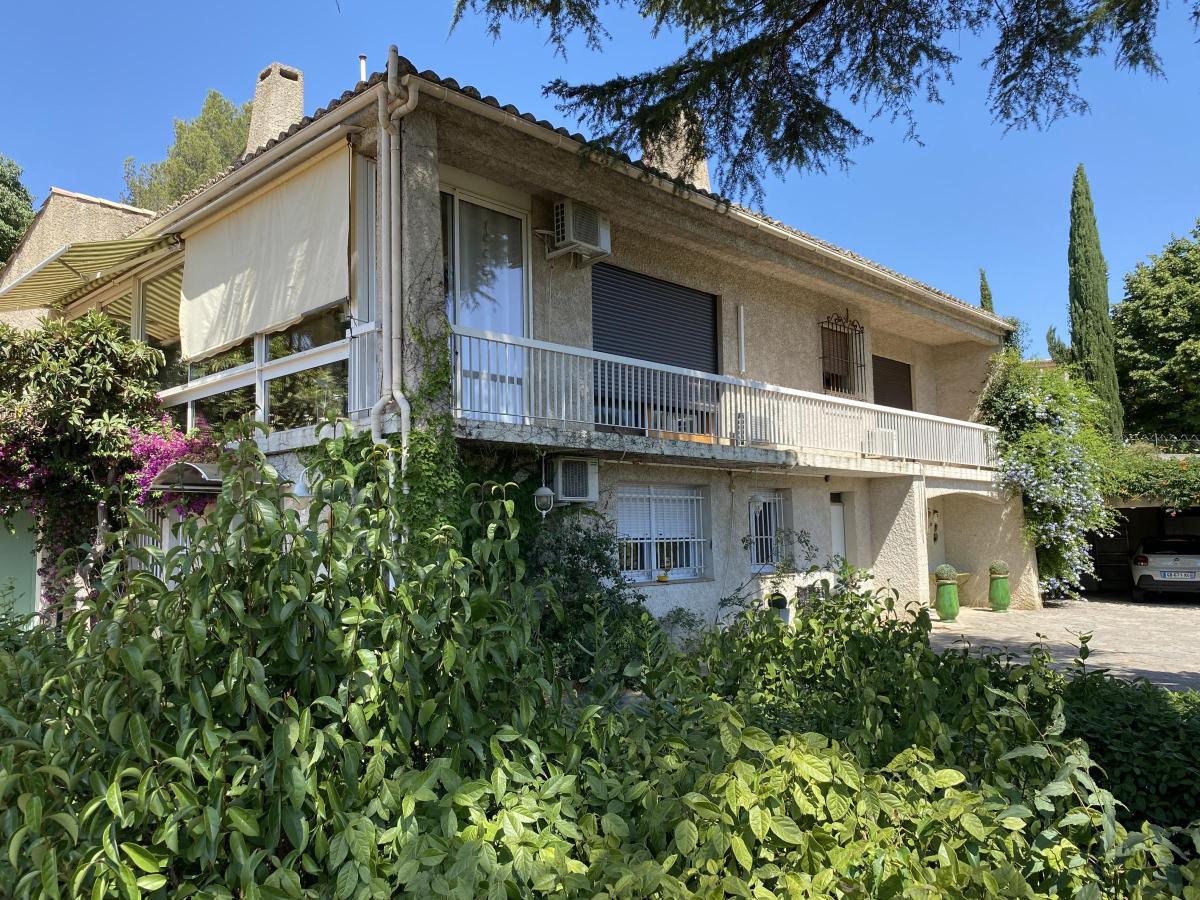 Collines Est de Nîmes: Maison de plus de 200 m² habitable + dépendances. Elle se compose d’un beau séjour avec véranda et terrasse, d’une cuisine équipée avec cellier et buanderie, de 4 chambres et de 3 salle de bains. Au Rez-de-jardin vous trouverez de nombreux rangements, cuisine d’été, caves etc… Ainsi qu’un appartement de type 2 de 60 m². Le tout sur un vaste terrain de 3000 m² avec forage, assainissement autonome et terrain piscinable.